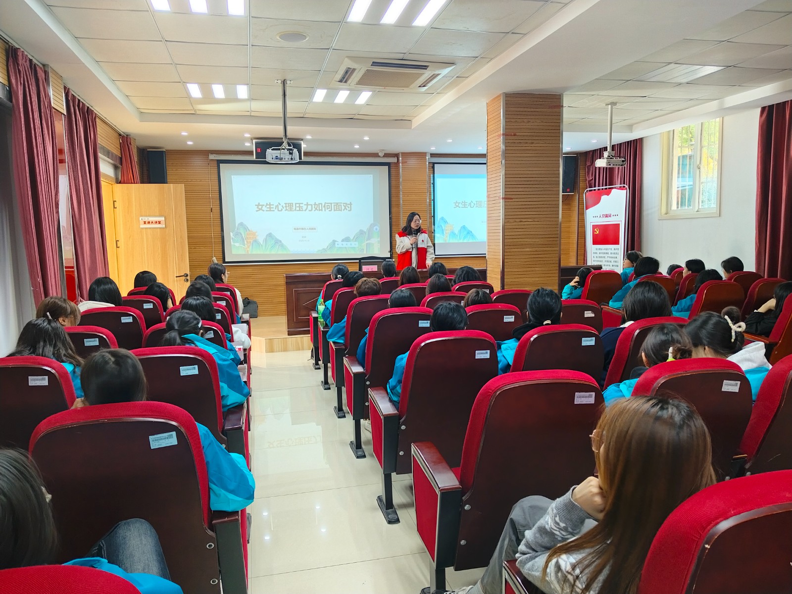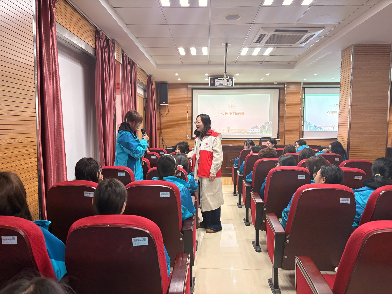 市红十字会心理救援队骨干、市第四人民医院临床心理科副主任、副主任医师陈星老师从学业压力、人际关系等压力源切入,通过案例分享、互动问答等方式,引导同学们正确认识压力,传授情绪调节的实用技巧,鼓励大家以积极心态面对成长中的烦恼。同学们认真聆听、积极互动,纷纷表示课程内容贴近生活、实用性强。