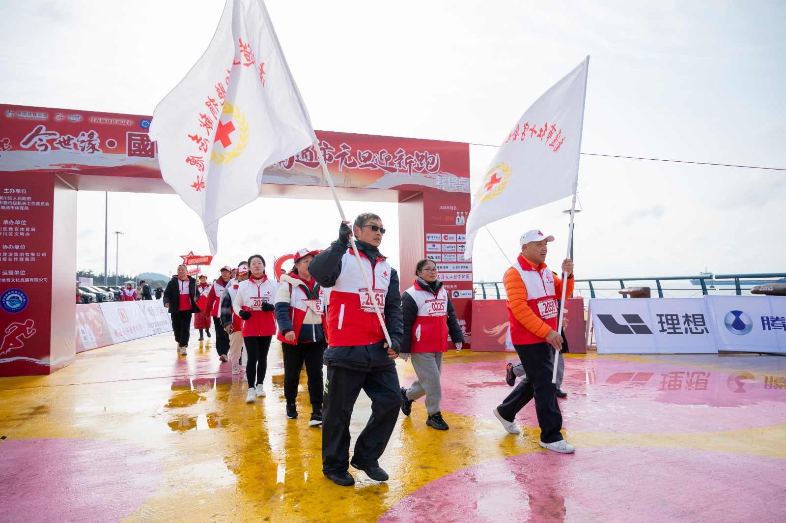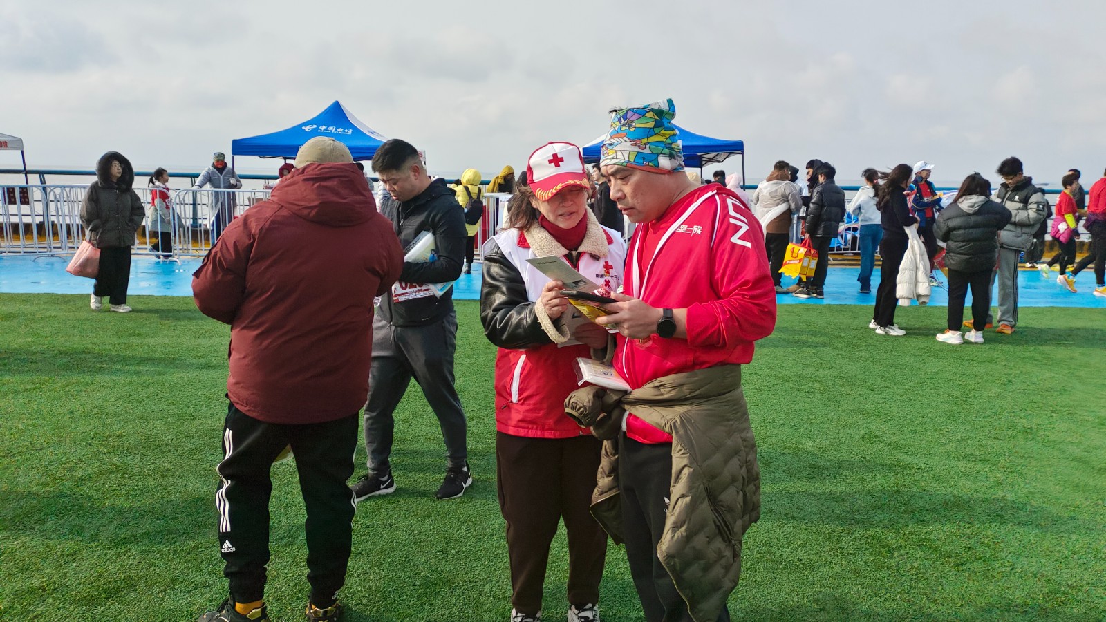 清晨初雪后的南通长江体育公园,虽江风凛冽,但处处洋溢着欢快与活力的节日氛围。身着队服的红十字志愿者们,成为迎新跑队伍中一道亮丽而温暖的风景线。他们之中,有成功捐献造血干细胞的爱心英雄,有长期坚守的“三献”宣传志愿服务队队员,也有专业的应急救护师资和赈济救援队队员。他们手持宣传牌、高扬队旗,在奔跑中传递健康向上的生命理念,播撒博爱奉献的希望火种。