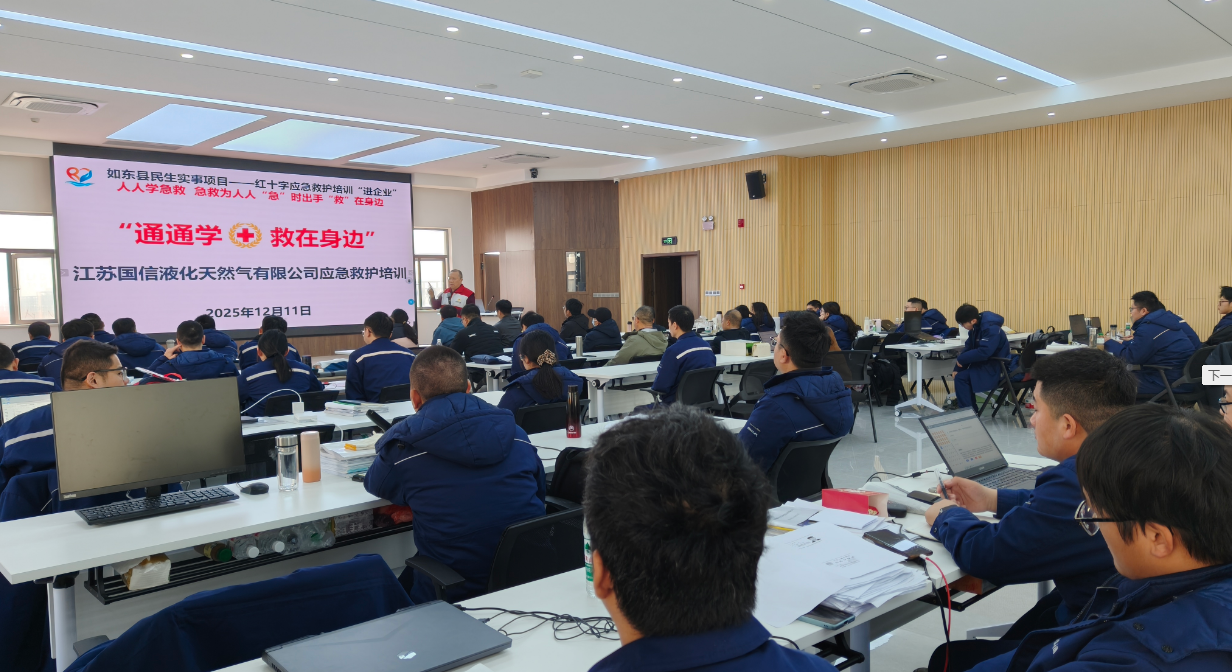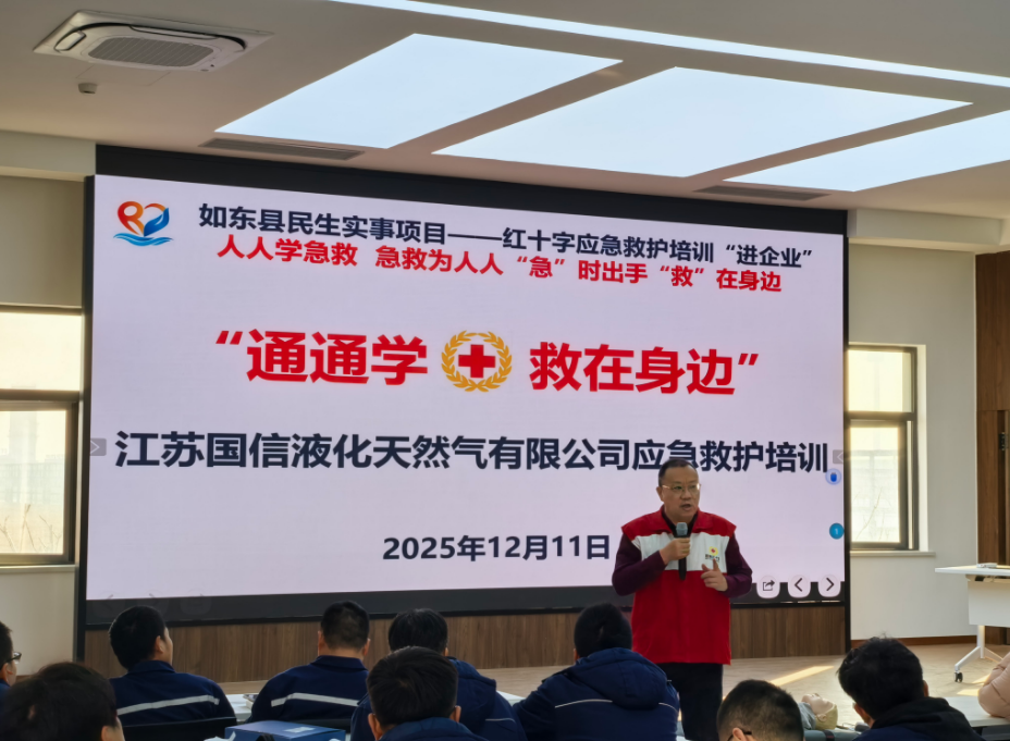 为进一步增强急救技能,促进心肺复苏急救知识的推广与普及, 12月11日上午,如东县红十字会为江苏国信液化天然气有限公司50多名员工,开展了应急救护培训活动。课堂上,薛应华老师用鲜活的案列,强调了应急救护对安全生产的重要性,引导他们切实增强“人人讲急救、个个会应急”的意识。培训现场,老师重点围绕心肺复苏、自动体外除颤仪(AED)的使用等进行了理论讲解和实操演示,并时不时穿插全场学员互动体验模式,加深巩固了培训效果。通过此次培训,不仅普及推广了红十字应急救护知识,也让新业态群体进一步意识到在意外事故发生时如何实施自救互救,挽救生命。