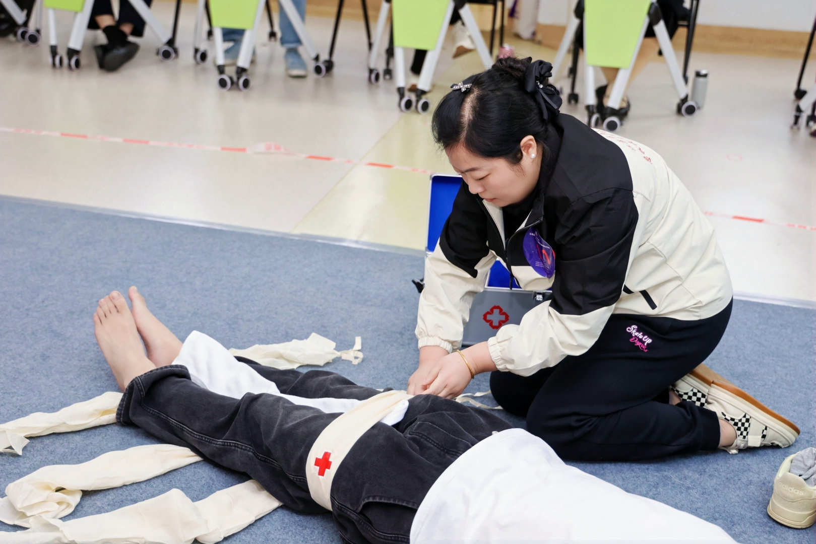 赛事内容围绕急救教育核心要点设计,涵盖理论考试、微课展示、心肺复苏实操、创伤救护技能以及团体情境演练五大模块。经过三天的激烈比拼,南通代表队凭借扎实的训练功底、稳定的临场发挥和默契的团队配合,在众多强队中崭露头角,拿下团体二等奖的优异成绩。